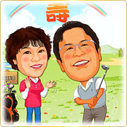 誕生日・栄転・退職お祝いの際に贈るプレゼントに当店のご贈答用似顔絵をお勧めいたします。オリジナル衣裳、または人物やペットなどを追加することは可能です。