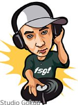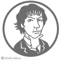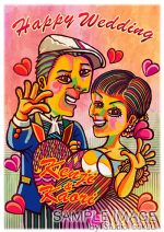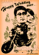 ウェディング似顔絵のほかに、イラストレーターごくうの過去の作品の一部を掲載しています。こちらはロゴ・版画調タイプの作品です。